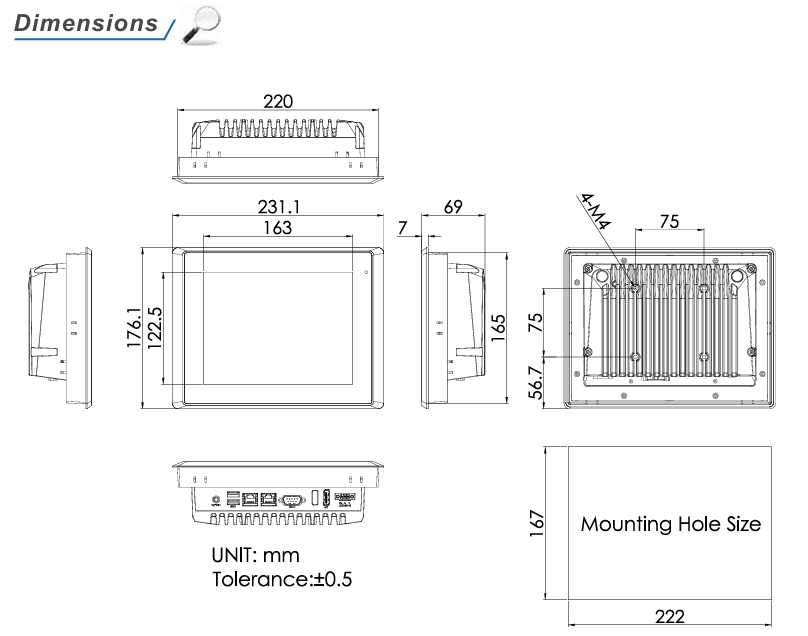 • Support Resistive touch screen and Projected Capacitive Multi-touch screen