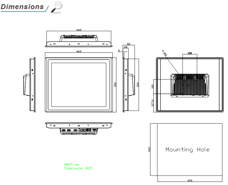 | Mounting | Panel Mount, VESA 100 x 100 |