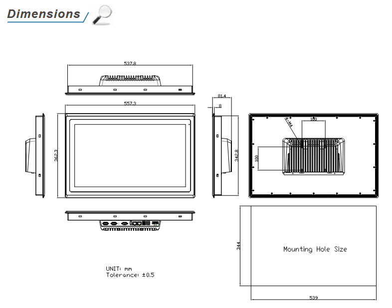 | Mounting | Panel Mount, VESA 100 x 100 |