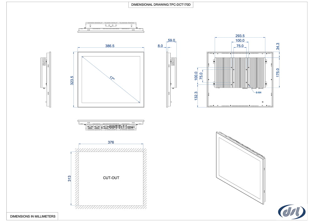 • Panel mount and VESA 75/100 mount, front IP66 rated protection