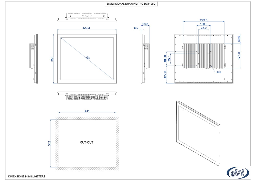 - 19.0” TFT LCD Display, LED Backlit, SXGA 1280*1024