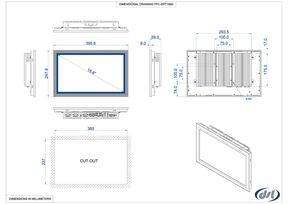 - Panel mount and VESA 75/100 mount, front IP66 rated protection